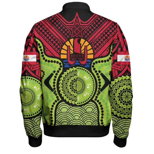 French Polynesia Bomber Jacket Native Polynesian Mix Aboriginal Patterns