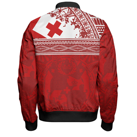 Tonga Bomber Jacket Flag Coat Of Arms Circle Ngatu Tribal