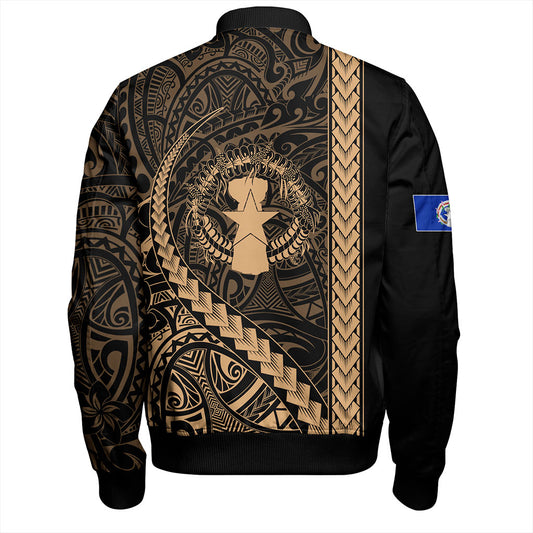 Northern Mariana Islands Bomber Jacket Coat Of Arms Polynesian Tribal Gold