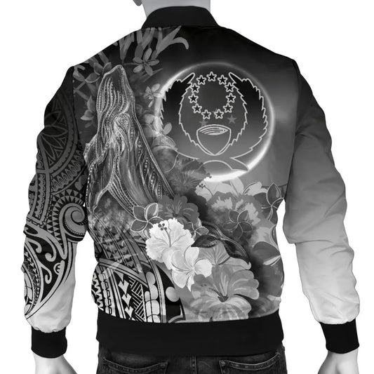 Pohnpei Custom Personalised Bomber Jacket - Humpback Whale with Tropical Flowers (White)