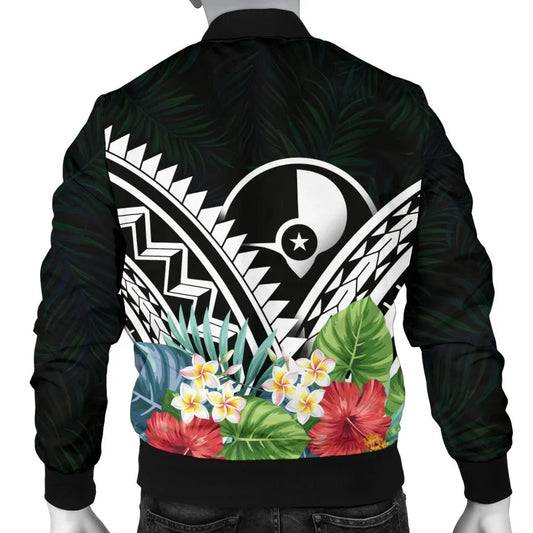 Yap Bomber Jacket - Yap Coat of Arms & Polynesian Tropical Flowers White