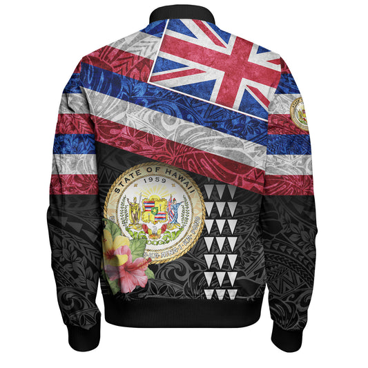 Hawaii Bomber Jacket Hawaiian Flag Polynesian Tribal Hibiscus Style