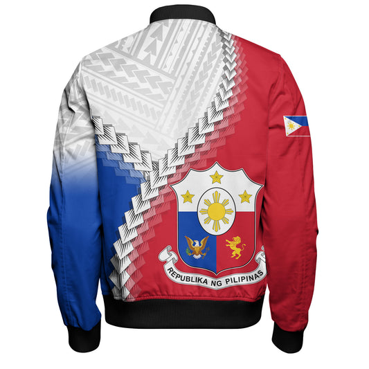 Philippines Filipinos Bomber Jacket Custom Filipino Coat Of Arms With Tribal Patterns Flag Style