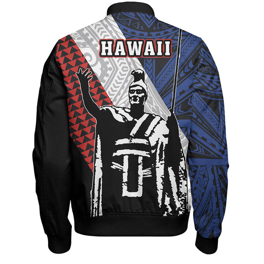 Hawaii Bomber Jacket Hawaii King With Flag Color With Traditional Patterns