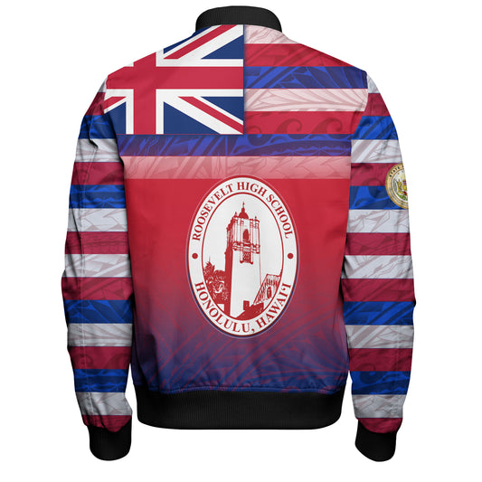 Hawaii President Theodore Roosevelt High School Bomber Jacket Flag Color With Traditional Patterns