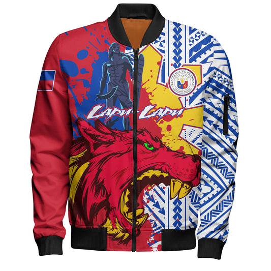 Philippines Filipinos Bomber Jacket Custom Lapu-Lapu And The Wolf Tribal Polynesian Style
