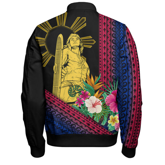 Philippines Filipinos Bomber Jacket Lapu Lapu Polynesia Pattern With Tropical Flower