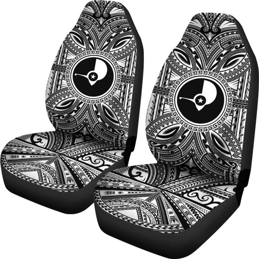 Yap Car Seat Cover - Yap Coat Of Arms Polynesian White Black