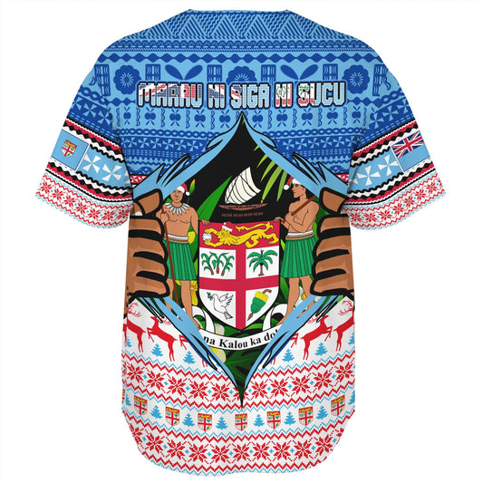 Fiji Baseball Shirt Custom Merry Christmas Bula Santa Marau na Kerisimasi Fiji