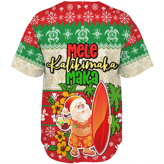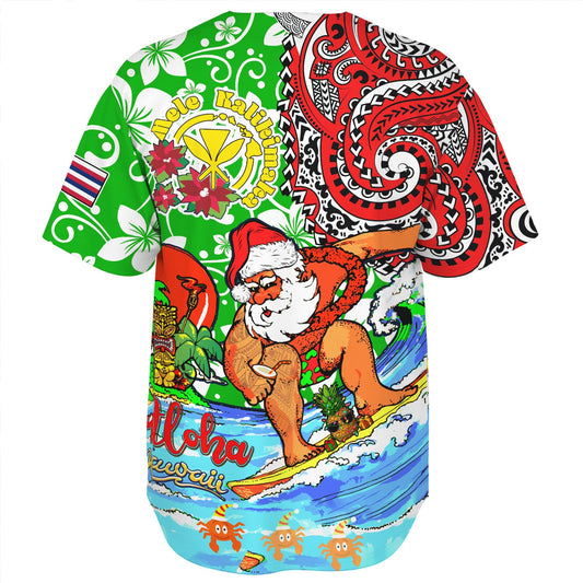 Hawaii Baseball Shirt Christmas Santa Claus Surfing Kanaka Maoli Pattern