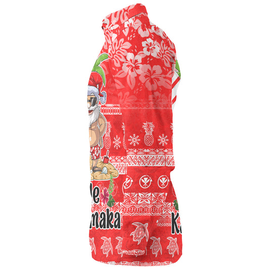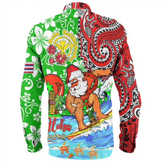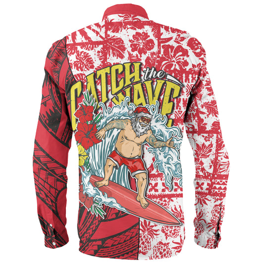 Hawaii Christmas Long Sleeve Shirt Surfing Santa Polynesian Pattern Vintage Style
