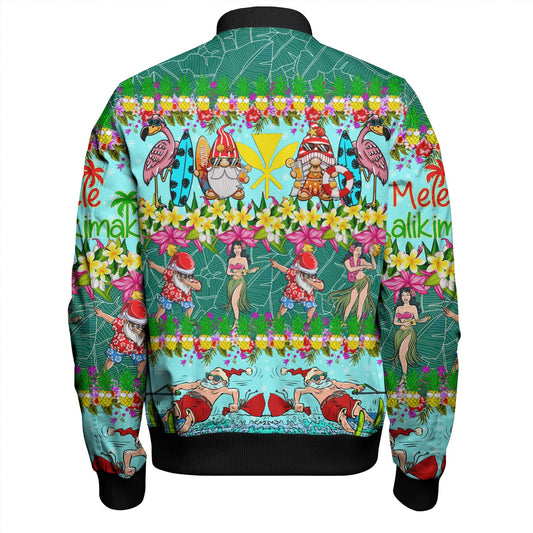 Hawaii Bomber Jacket Dabbing Santa Hula Dance Tropical Gnomes Aloha Mele Kalikimaka Christmas