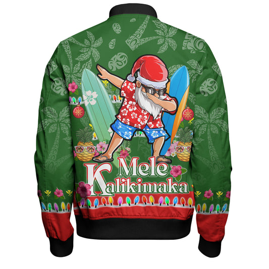 Hawaii Bomber Jacket Mele Kalikimaka Dabbing Santa Christmas Style