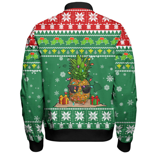 Hawaii Bomber Jacket Mele Kalikimaka Merry Christmas Tree Pineapple Tropical