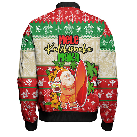 Hawaii Bomber Jacket Santa Surfing Merry Christmas Kanaka Maoli