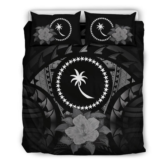 Chuuk Duvet Cover Set - Chuuk Flag & Gray Hibiscus
