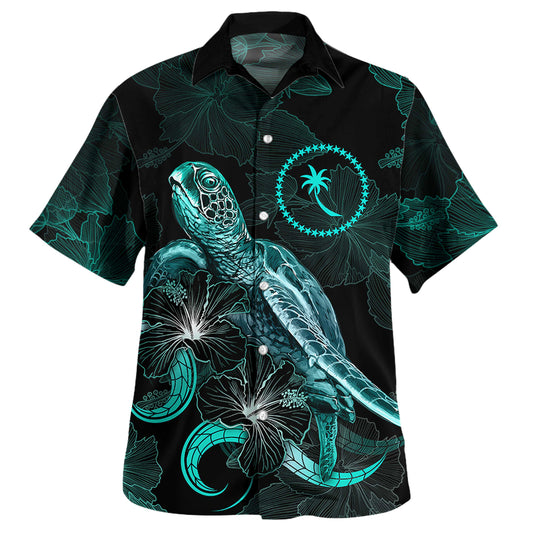 Chuuk Combo Dress And Shirt - Chuuk Pride With Polynesian Turtle Blooming Hibiscus Turquoise