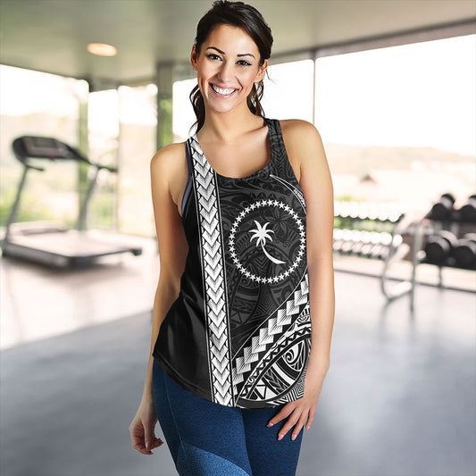 Chuuk Women Racerback Tank - Micronesian Pattern Flash Black