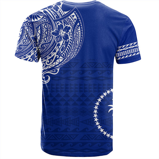 Chuuk State T-Shirt Sea Turtle With Blooming Hibiscus Flowers Tribal Blue