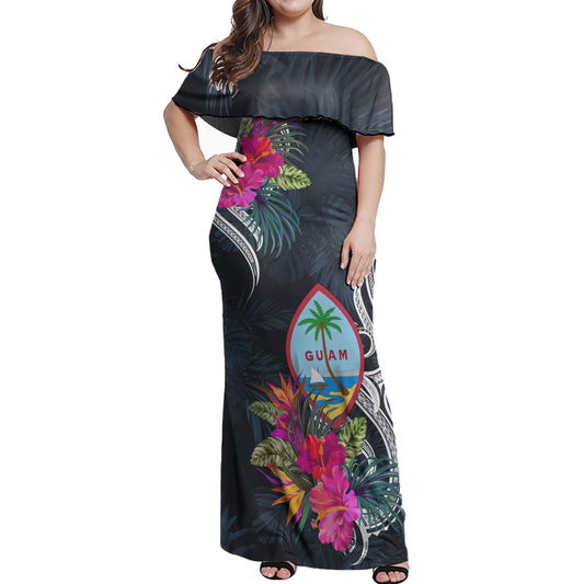 Guam Combo Off Shoulder Long Dress And Shirt Flower And Turtle