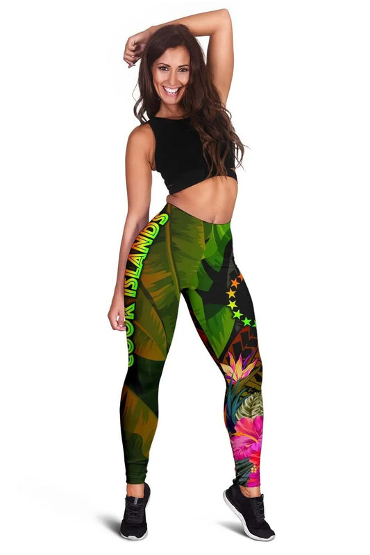 Cook Islands Polynesian Personalised Legging - Hibiscus and Banana Leaves