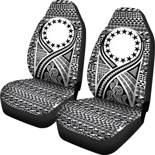 Cook Islands Car Seat Cover - Cook Islands Coat Of Arms Polynesian White Black