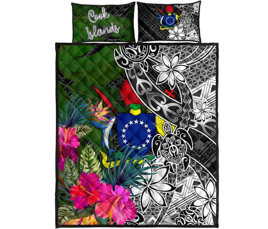 Cook Islands Quilt Bed Set - Turtle Plumeria Banana Leaf