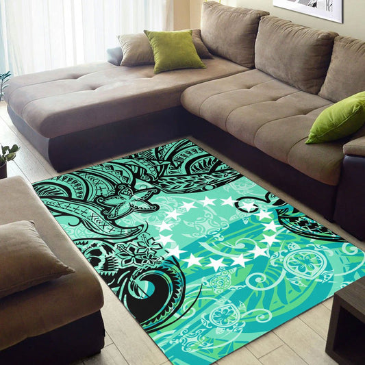Cook Islands Polynesian Custom Personalised Area Rug - Floral With Seal Flag Color