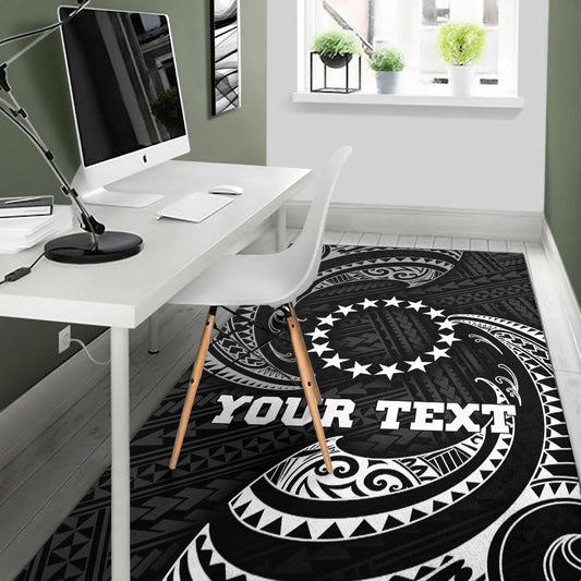 Cook Islandss Polynesian Custom Personalised Area Rug - White Tribal Wave