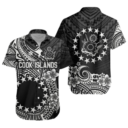 Cook Islands Short Sleeve Shirt Plumeria Flowers Tribal Motif Design
