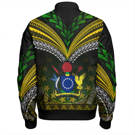 Cook Islands Bomber Jacket Tribal Flag With Coat Of Arms