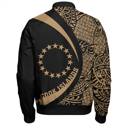 Cook Islands Bomber Jacket Coat Of Arm Lauhala Gold Circle
