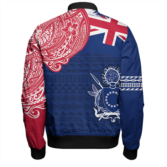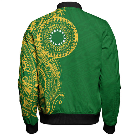 Cook Islands Bomber Jacket Flag Color With Traditional Patterns