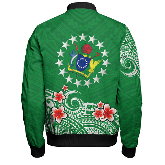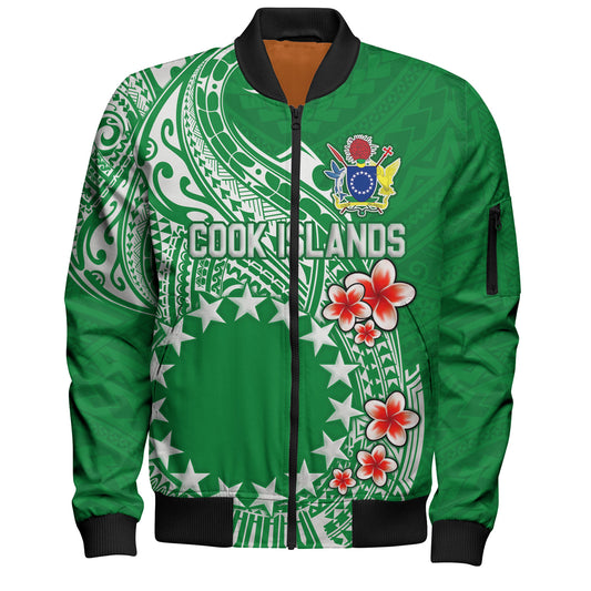 Cook Islands Bomber Jacket Plumeria Flowers Tribal Motif Design