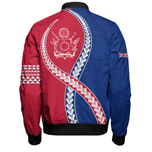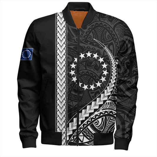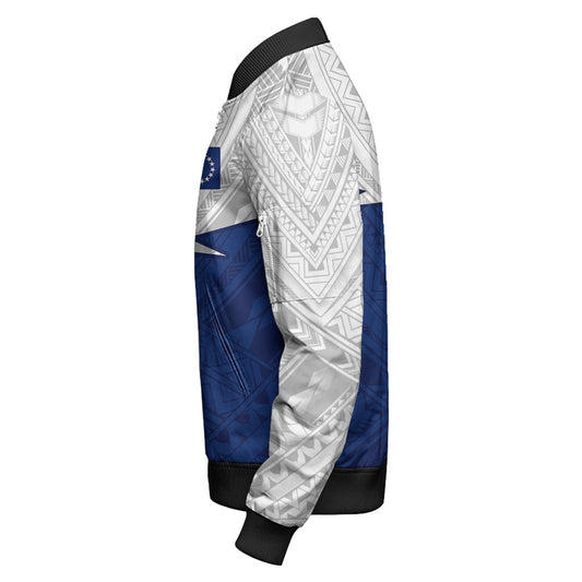 Cook Islands Custom Personalised Bomber Jacket Polynesian Tribal Patterns Curve Style
