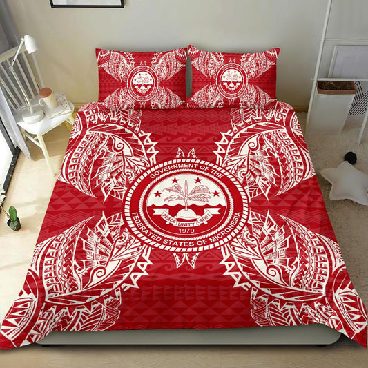 Polynesian Bedding Set - Federated States Of Micronesian Duvet Cover Set Map Red White