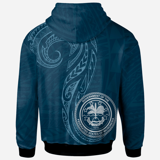 Federated States of Micronesia Custom Personalised Hoodie - Coat Of Arm with Blue Turtle
