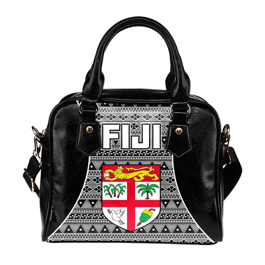 Fiji Shoulder Handbag - Tapa Pattern Sport Style Black
