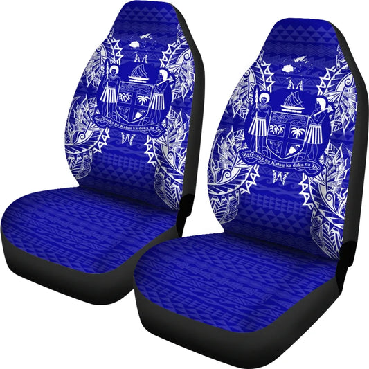 Fiji Car Seat Covers - Fiji Seal With Polynesian Tattoo Style (Blue)