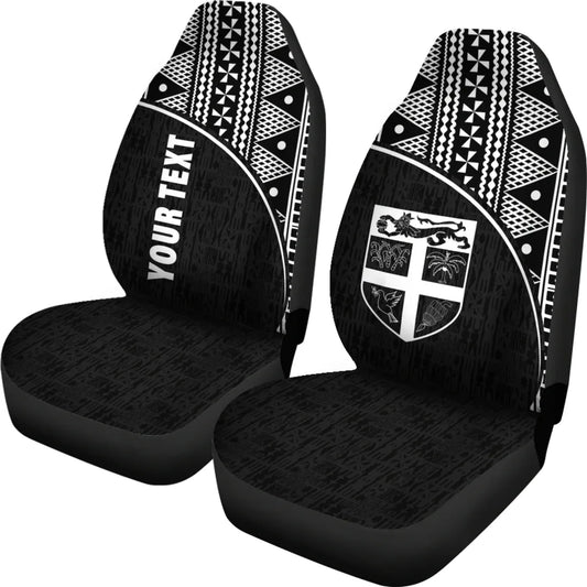 Fiji Custom Personalised Car Seat Cover - Fiji Coat Of Arms Polynesian Chief Tattoo Black Version