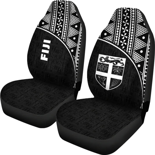 Fiji Tapa Car Seat Covers - Fiji Flag White Curve