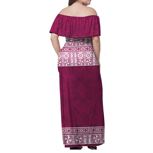Fiji Woman Off Shoulder Long Dress Fijian Masi Palm Curve Style