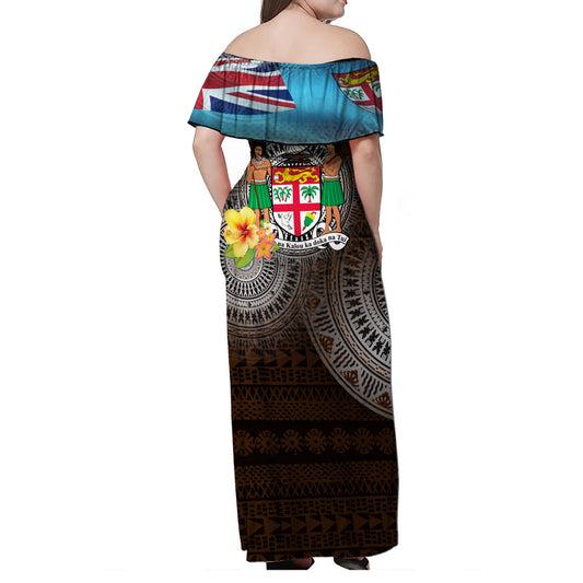 Fiji Coat Of Arm Woman Off Shoulder Long Dress Polynesian Gold Plumeria