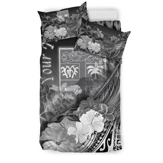 Fiji Personalised Bedding Set - Fiji Seal With Polynesian Tattoo Style ( Black)
