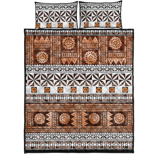 Fiji Quilt Bed Set Bula Fiji Masi Motif Brown Color Design