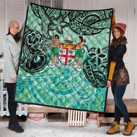 Fiji Polynesian Premium Quilt - Green Tentacle Turtle Crest