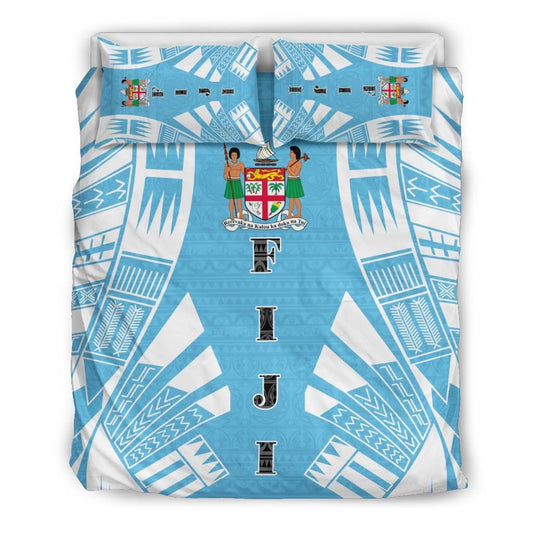 Fiji Bedding Set - Fiji Coat Of Arms & Polynesian Tropical Flowers White