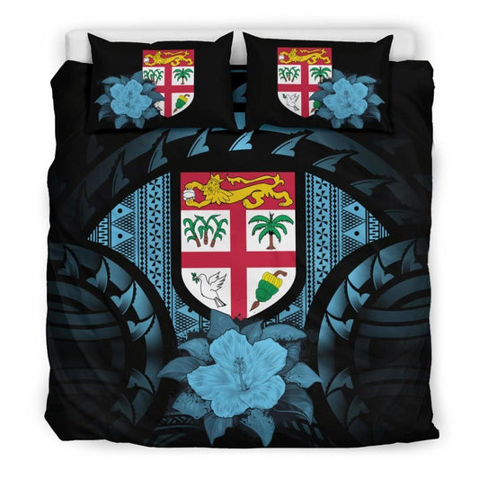 Fiji Duvet Cover Set - Fiji Flag & Blue Hibiscus