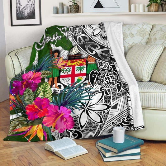 Fiji Polynesian Custom Personalised Premium Blanket - Coat Of Arm With Hibiscus