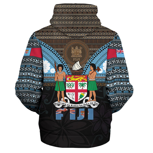 Fiji Sherpa Hoodie Coconut Pattern And Coat Of Arms
